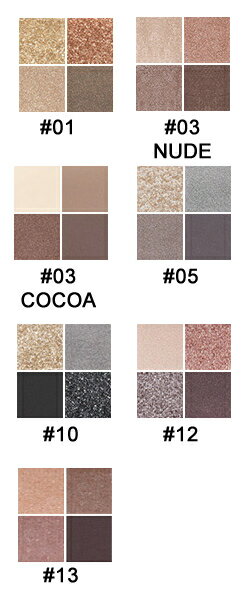 各シェードによって、シアース パークル、サテン、シマー、マットが絶妙に配色され、ソフトから濃いルックまで自在に。